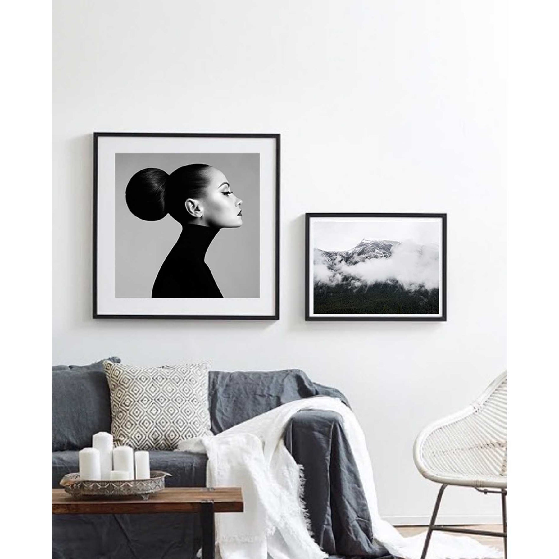 - Above a sofa → 60cm x 90cm or 70cm x 100cm