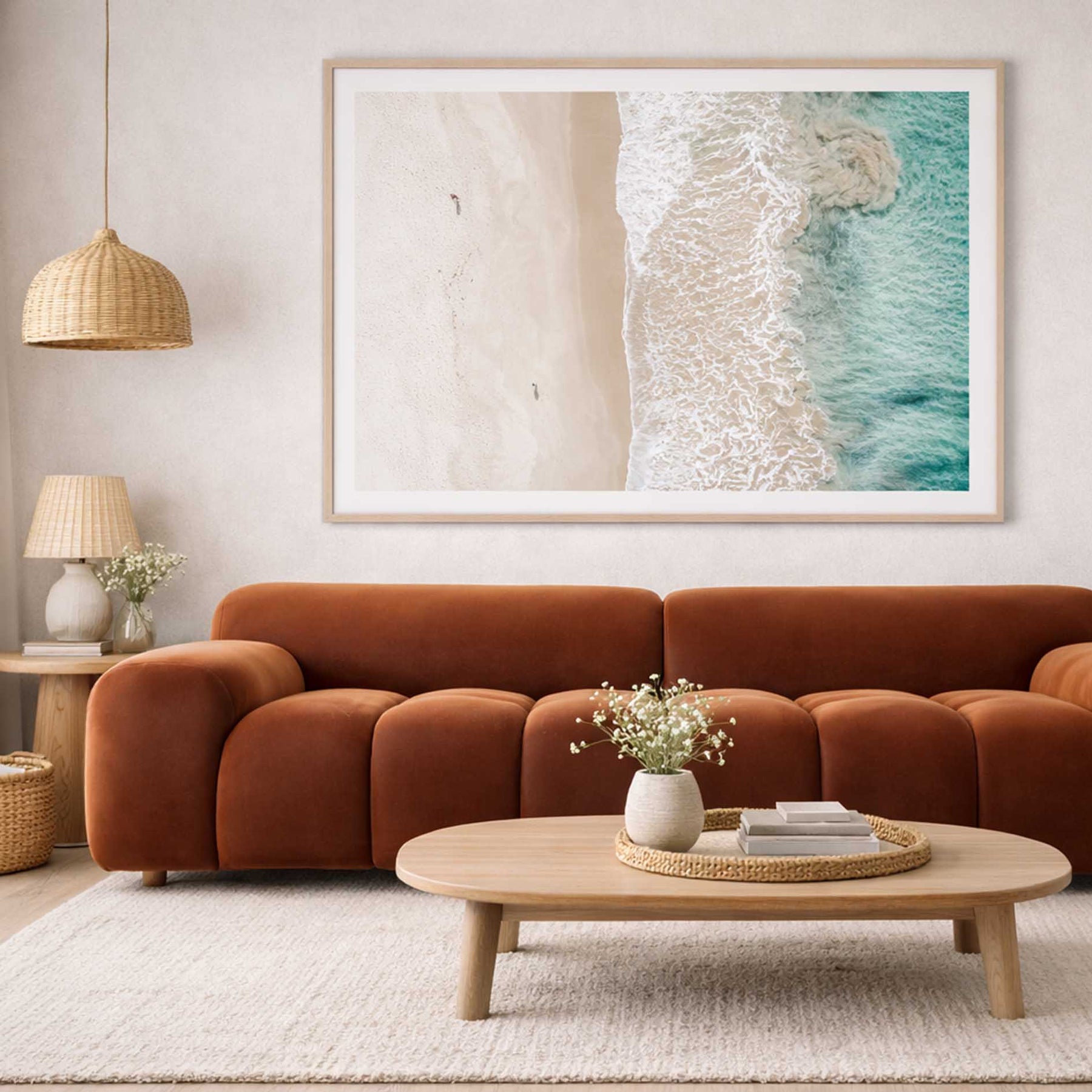 - Above a sofa → 60cm x 90cm or 70cm x 100cm